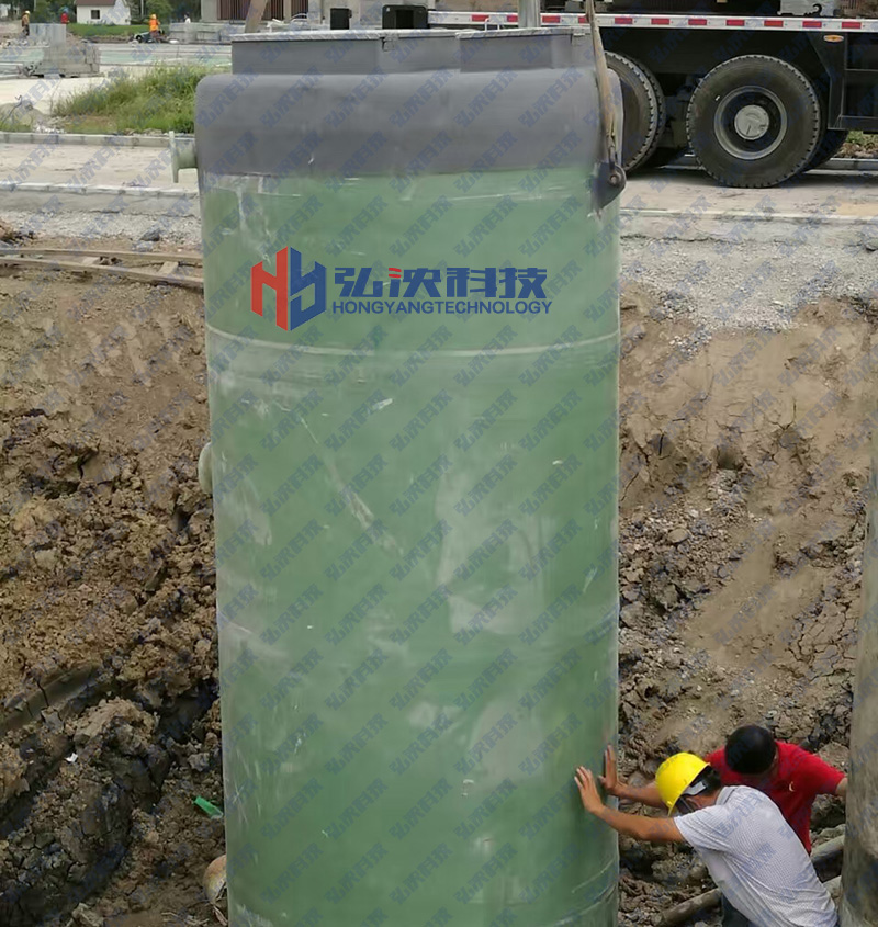 地埋式玻璃一體化泵站支持定制,認準弘泱科技一體化預制泵站廠家,泵站主體為復合纏繞一體化玻璃鋼筒體,筒體防腐能力強,可以實現全自動無人值守控制系統。